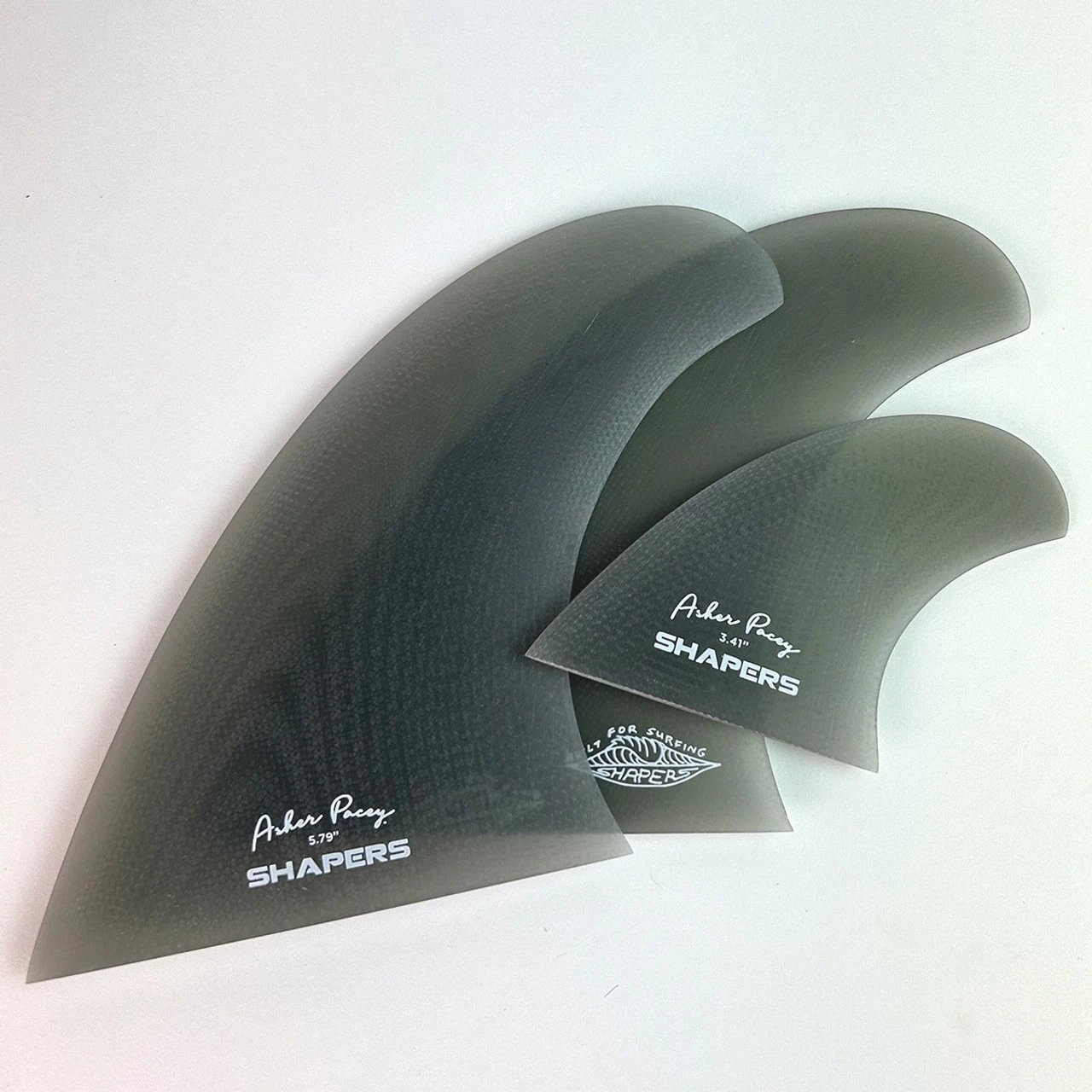 The AP5.79” Twin Fin sets are inspired by Asher Pacey’s stylish and progressive Twin Fin surfing. The AP Twin Fins redefine the traditional approach to flat and lateral twin fin surfing, bridging the gap between Twin Fins and Thrusters. The AP Twin Fins are designed to provide maximum drive, speed and hold through turns whilst maintaining a lively, free flowing ride that is iconic to twin fin surfing.