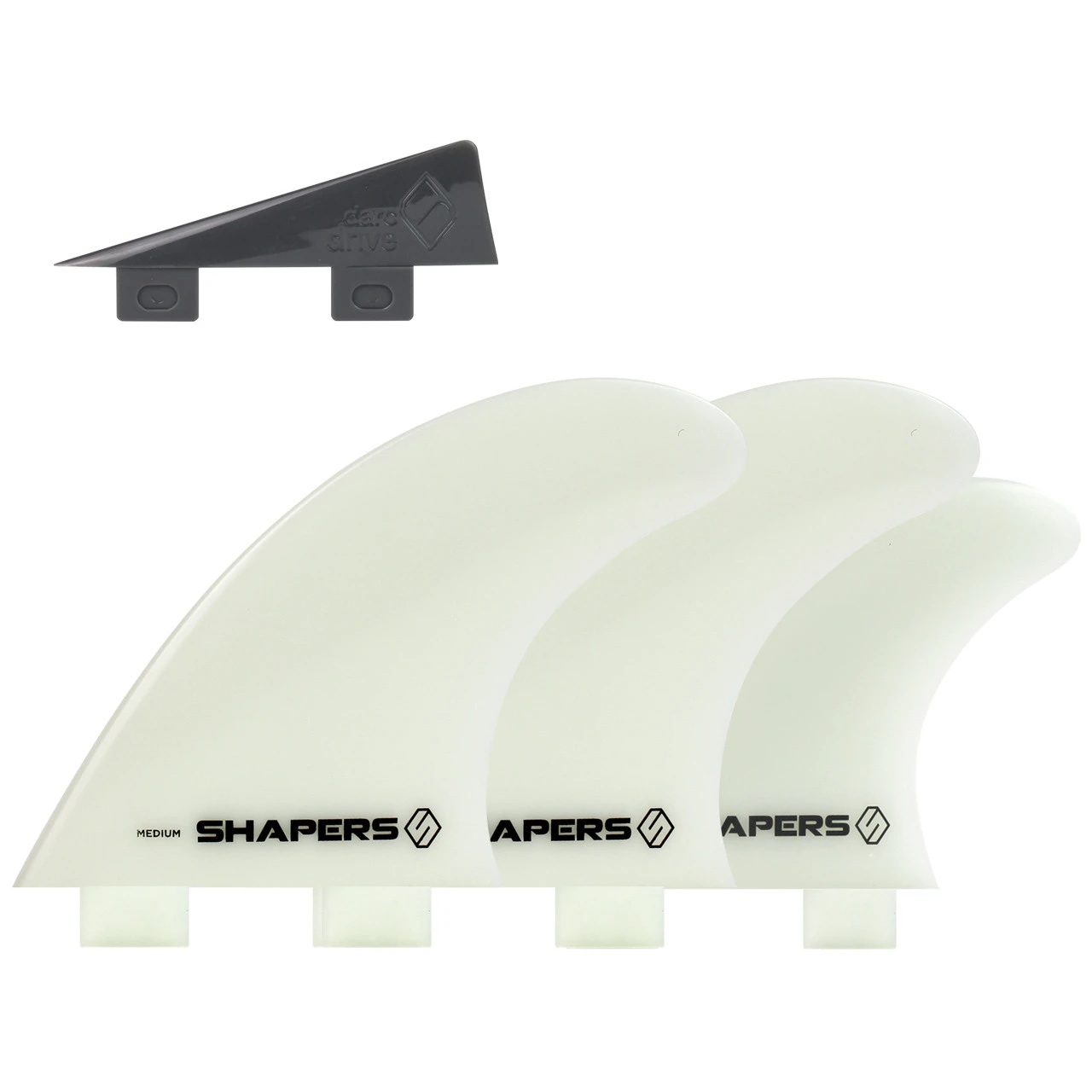 An all round fin set-up by Shapers that is internationally recognised as a ‘go to set-up’ for surfers in the medium weight category (65-80kgs). The Medium blends drive, control and release seamlessly, and is offered in Shapers Core-lite and Carbon Stealth to give surfers the choice of fin flex properties, fin responsiveness and overall performance. A very reliable fin choice for performance in all surf conditions.
