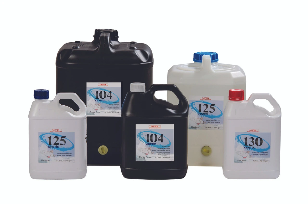 KINETIX® R104 Ultra Clear Surfboard Laminating Epoxy System. R104 formulation is an ultra high clear finish with industry leading mechanical performance properties.